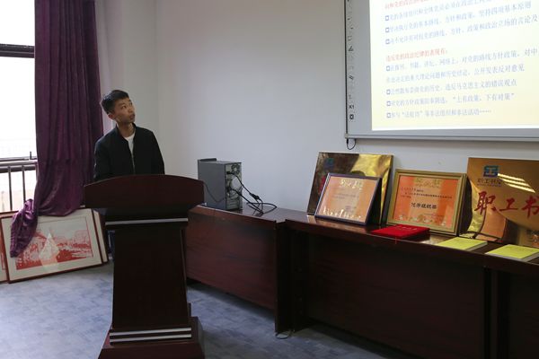 会议传达了学校2017年第二次党委中心组学习(扩大)会议精神。会议要求,各党支部要深刻领会学校党委书记石培新在中心组学习会上的讲话精神,“要把省第十二次党代会精神作为学校发展的重要指南和政治纲领,把学习贯彻好省第十二次党代会精神作为当前和今后的重大政治任务,深刻领会和精准把握省第十二次党代会的重要意义和精神实质,切实提高运用党代会精神分析和解决实际问题的能力和水平,让党代会精神在教职工生中入脑入心,确保省党代会精神在贵州师范学院落地生根,开花结果”。会议还要求,各党支部要组织党员干部认真学习学校党委副书记令狐彩桃《学习新愚公精神》主题发言,号召广大党员群众学习“贵州榜样”黄大发“绝壁凿天渠,壮志凌山河”的先进事迹,学习他对党忠诚、心系群众、敢于担当、无私奉献的优秀品质,将黄大发精神贯穿运用到各项工作中去。