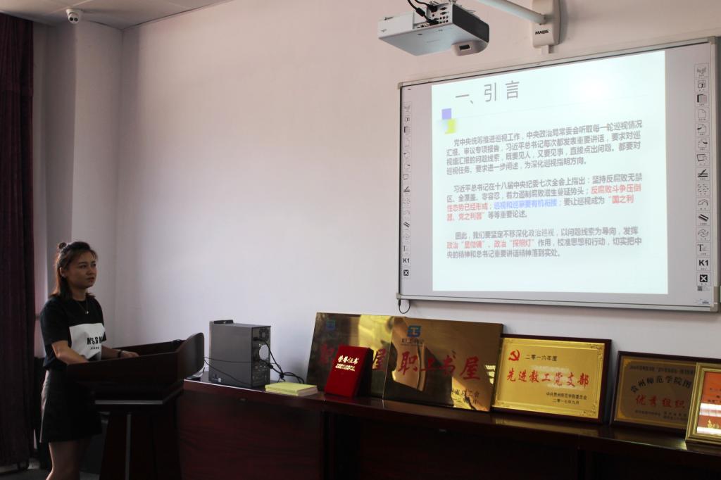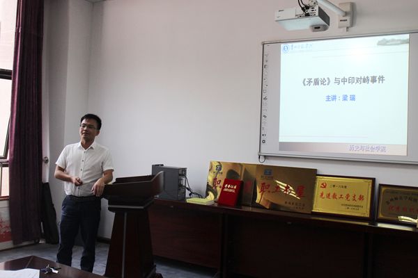 会议还对近期几项党建工作进行了安排部署。会议最后进行了九月份建设学习型基层党组织上“微党课”,分别是对外交流合作处党支部委员梁瑞上《学习毛泽东同志的<矛盾论>与中印外交》、国资处党支部委员马婧上《谈谈对巡视工作的认识》、重点实验室党支部书记肖铁军上《“绿色发展”》、学报教科所党支部书记黄梅上《警钟长鸣,把好政治关》。
