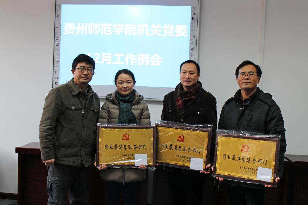 会议对机关党委2015年开展创建“师生最满意服务部门”活动进行了总结,根据12个学院教师和学生代表打分结果,宣布评选出学工部、工会、组织部、团委、学生资助管理中心获得“师生最满意服务部门”荣誉,会议向以上部门颁发了荣誉奖牌。