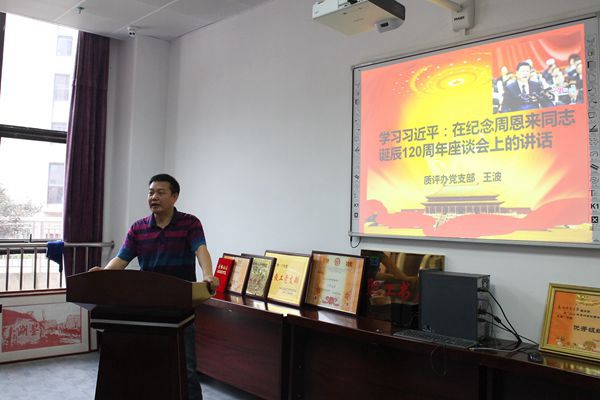 会议最后按计划进行了建设学习型基层党组织上“微党课”。这期上“微党课”的分别是,质评办党支部书记王波上《学习习近平在纪念周恩来同志诞辰120周年座谈会上的讲话》、学工部党支部书记郝进欣上《学习近期学生思想政治工作相关讲话精神》、审计处党支部书记尚婕上《自媒体时代的责任担当》、图书馆党支部书记侯晓玲上《坚定文化自信,做文化领域的耕耘者》、计财处党支部书记罗佳上《浅谈党的十九大报告》。